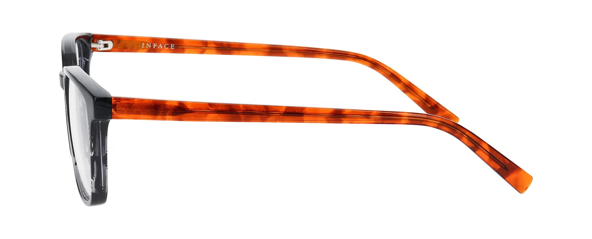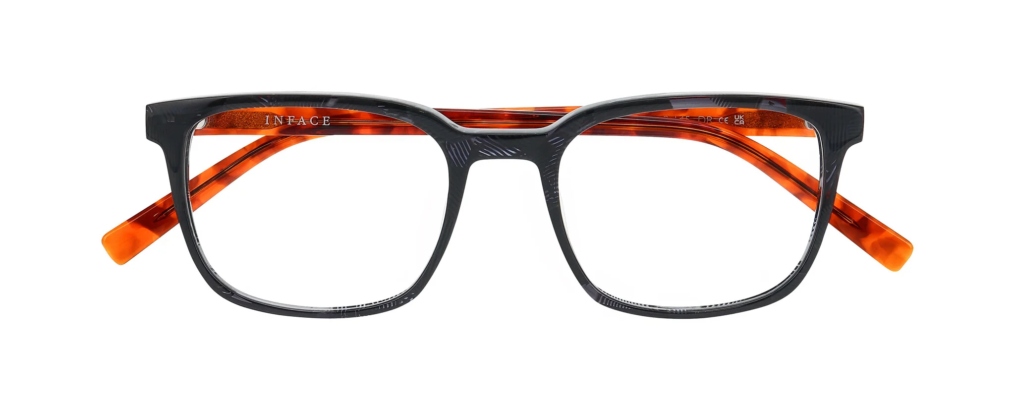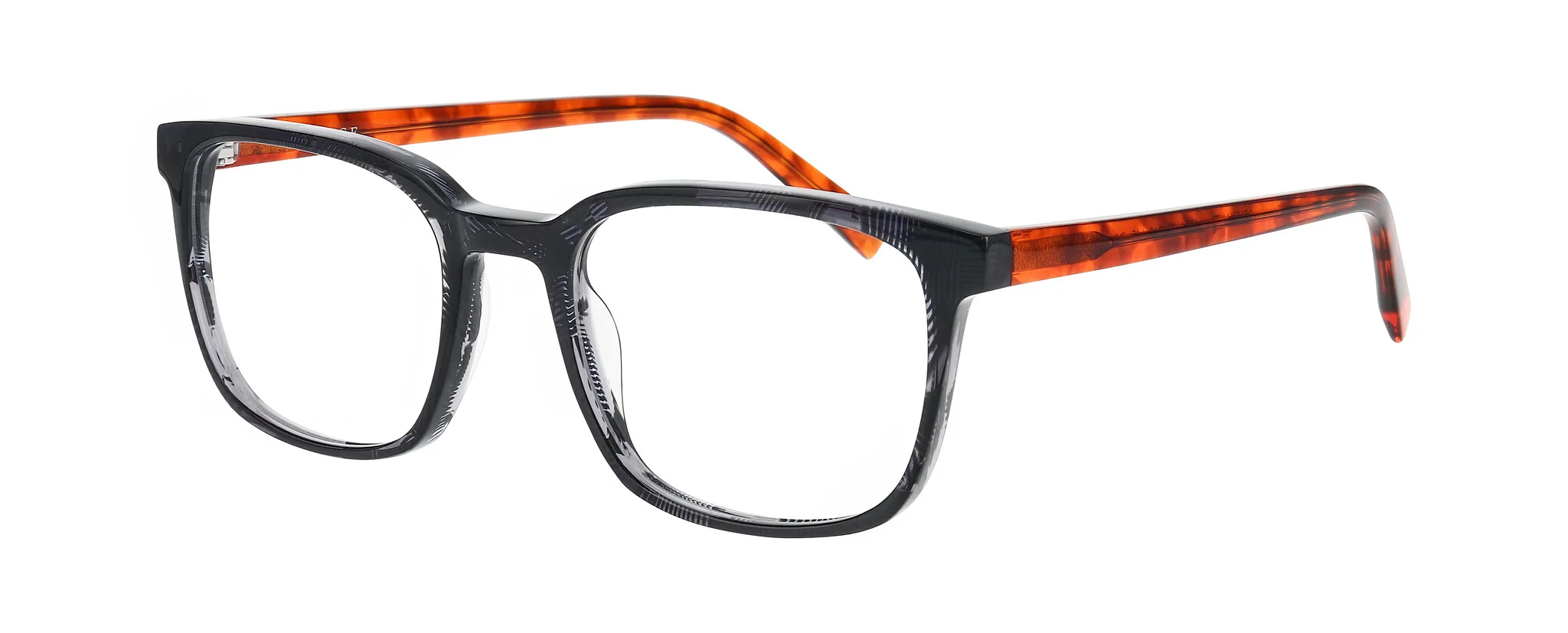 Choose from four striking colors, each featuring fun patterns and depth, from the transparent grey with wild green demi temples to the bold grey camo stripe.